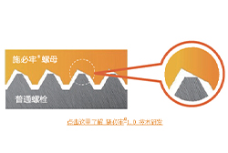配合施必牢?螺母的螺紋結(jié)構(gòu)特點,施必牢?螺栓的螺紋牙尖設(shè)計成與施必牢?螺母螺紋相互配合的一個30°楔形面,這個結(jié)構(gòu)設(shè)計使得螺紋接觸由之前的線接觸變成帶狀面接觸,改善了接觸的穩(wěn)定性。從而使得夾緊力持續(xù)恒定。除了提供更優(yōu)越的防松性能外,還可防止滑牙,防治螺栓斷裂,防脫扣,抗過扭,是一種新型的高可靠螺栓副。